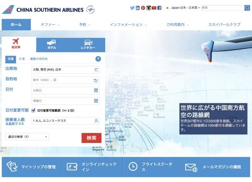 http://global.csair.com/JP/JP/Home 中国南方航空 お値段は10800円+TAXとか 最終的には15860円 時間もすばらしい。しかしこれでは帰りの船がヤバいかもしれない。だけどもたっぷり遊べるねえ。 デルタアメックス持ってれば、ラウンジにも入れてSkypriolity(…